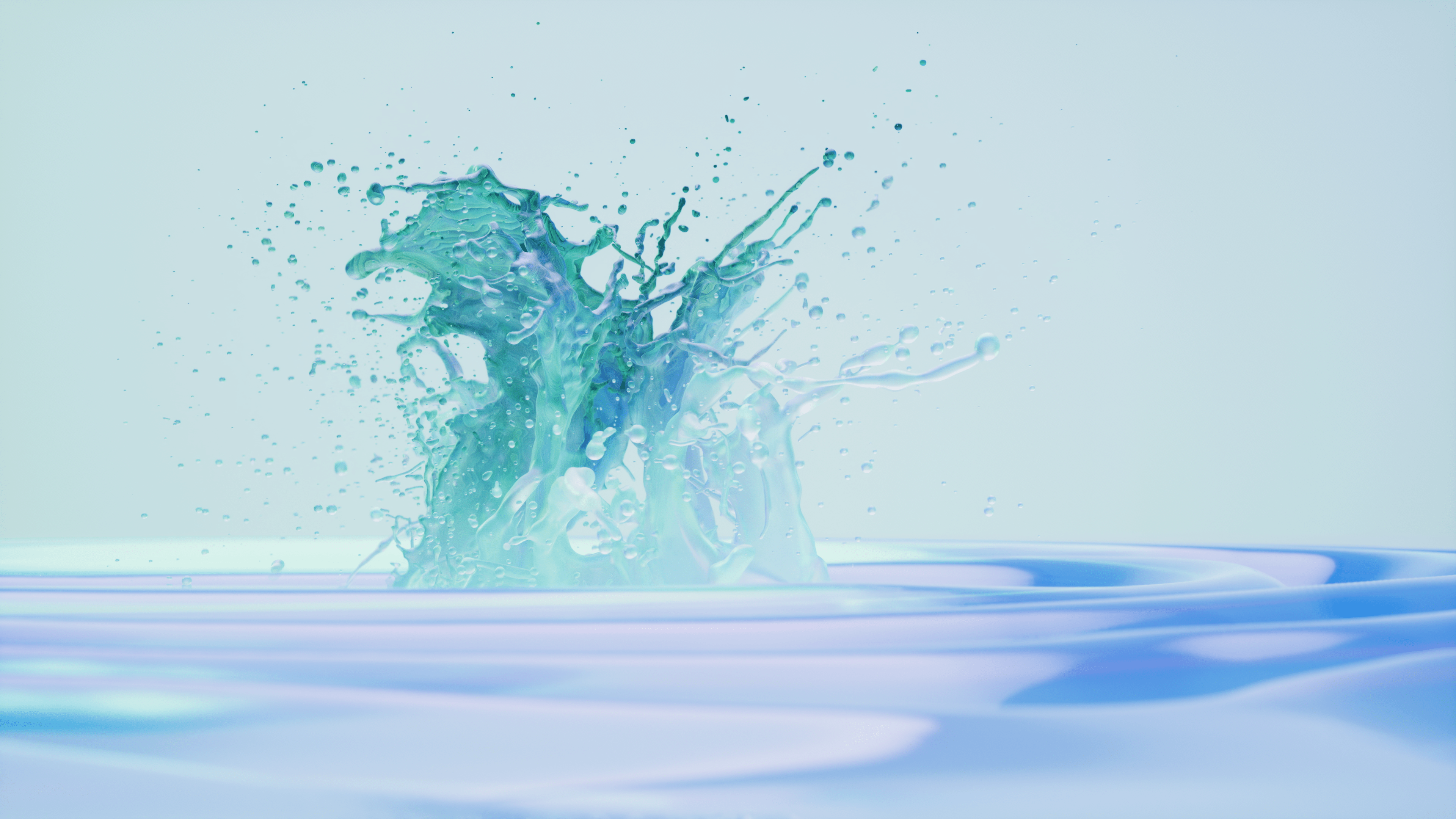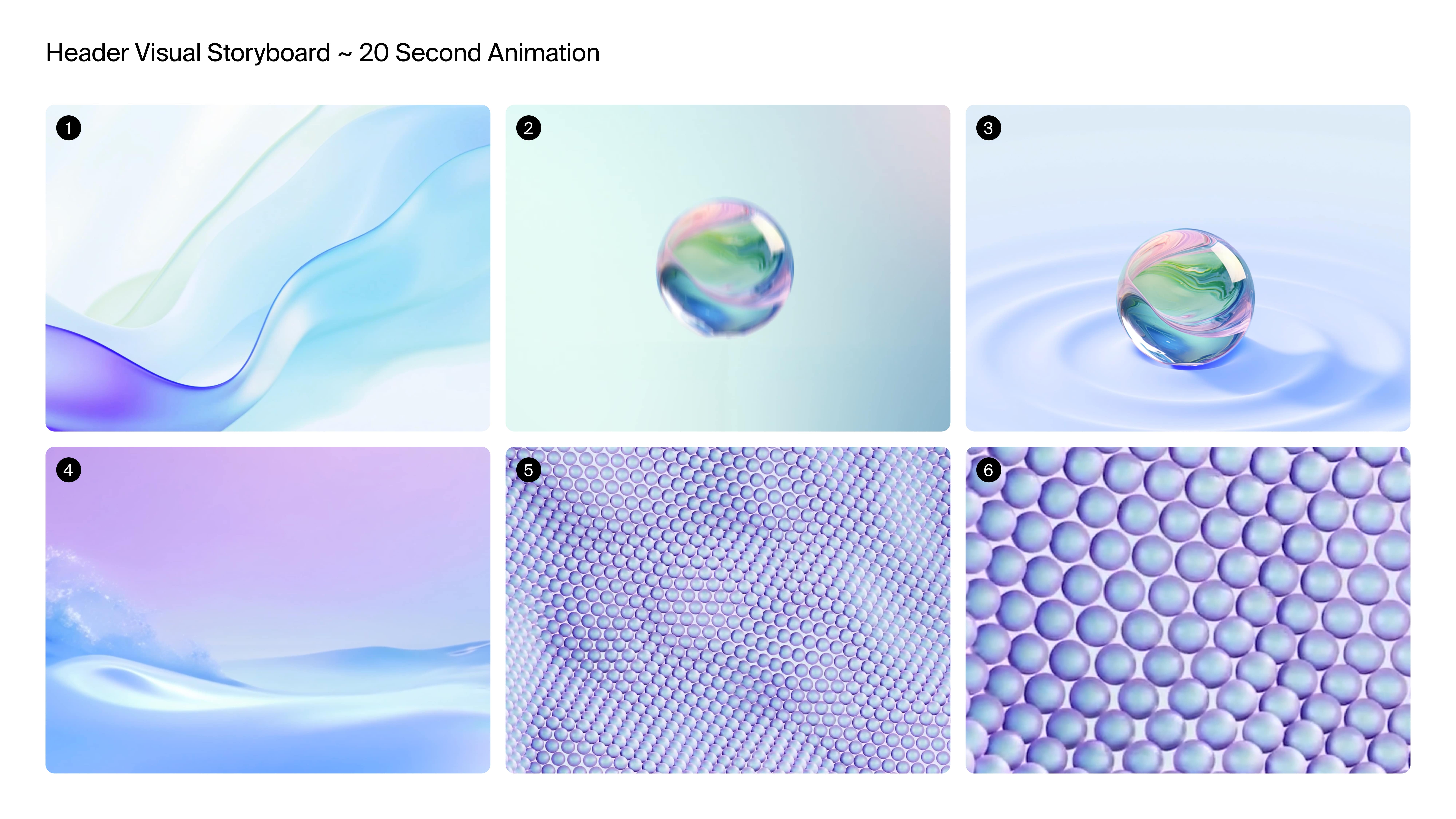 The animation begins with a singular, globe-like glass sphere. As it drops into a vast, ocean-like surface, small ripples occur instigating splashes and eruptions, transforming into waves and a cascade of countless new spheres, before looping back to the beginning to repeat the visual metaphor. This powerful visual embodies the concept of "Global Impact" – a single action creating a wave of positive change.