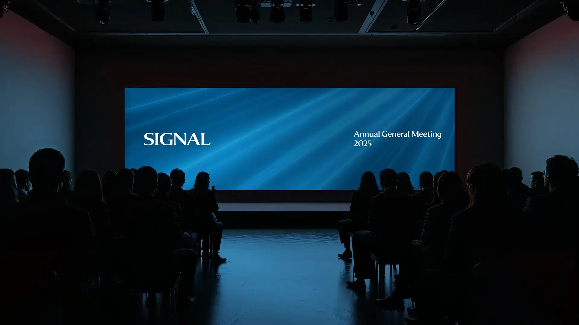 This thinking carried across every touchpoint. We crafted a distinctive imagery style that blends AI-generated abstract visuals with original photography, giving the brand a look that feels both innovative and human. We implemented and launched the new identity at Signals Annual General Meeting, providing creative direction and production for the annual presentation, including print setup for the large-format stage backdrop. In parallel, we designed and built SIGNAL’s new website, creating an elegant and intuitive digital experience that clearly communicates the firm’s values and expertise. To support everyday use, we delivered a full suite of branded assets — from presentation templates to business cards and email signatures — along with cohesive social media graphics to strengthen their digital presence.